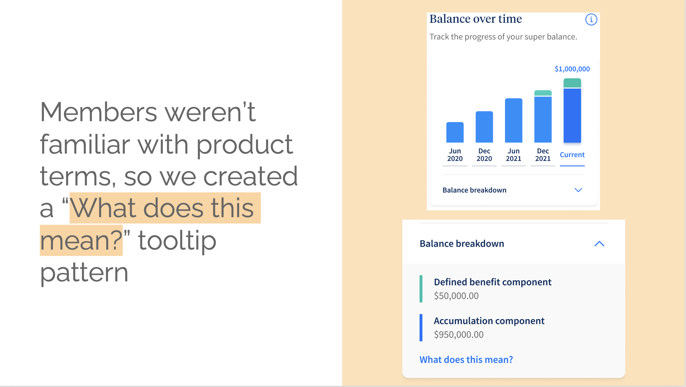 UniSuper already had a member portal and data on how people were using it. There was already a pile of user research on what members were doing in their online accounts. Plus a competitor analysis of the challenges other funds faced in their app builds. So that's where I started. Getting a feel for where, how and why a project has landed is my first move on any new project, big or small.